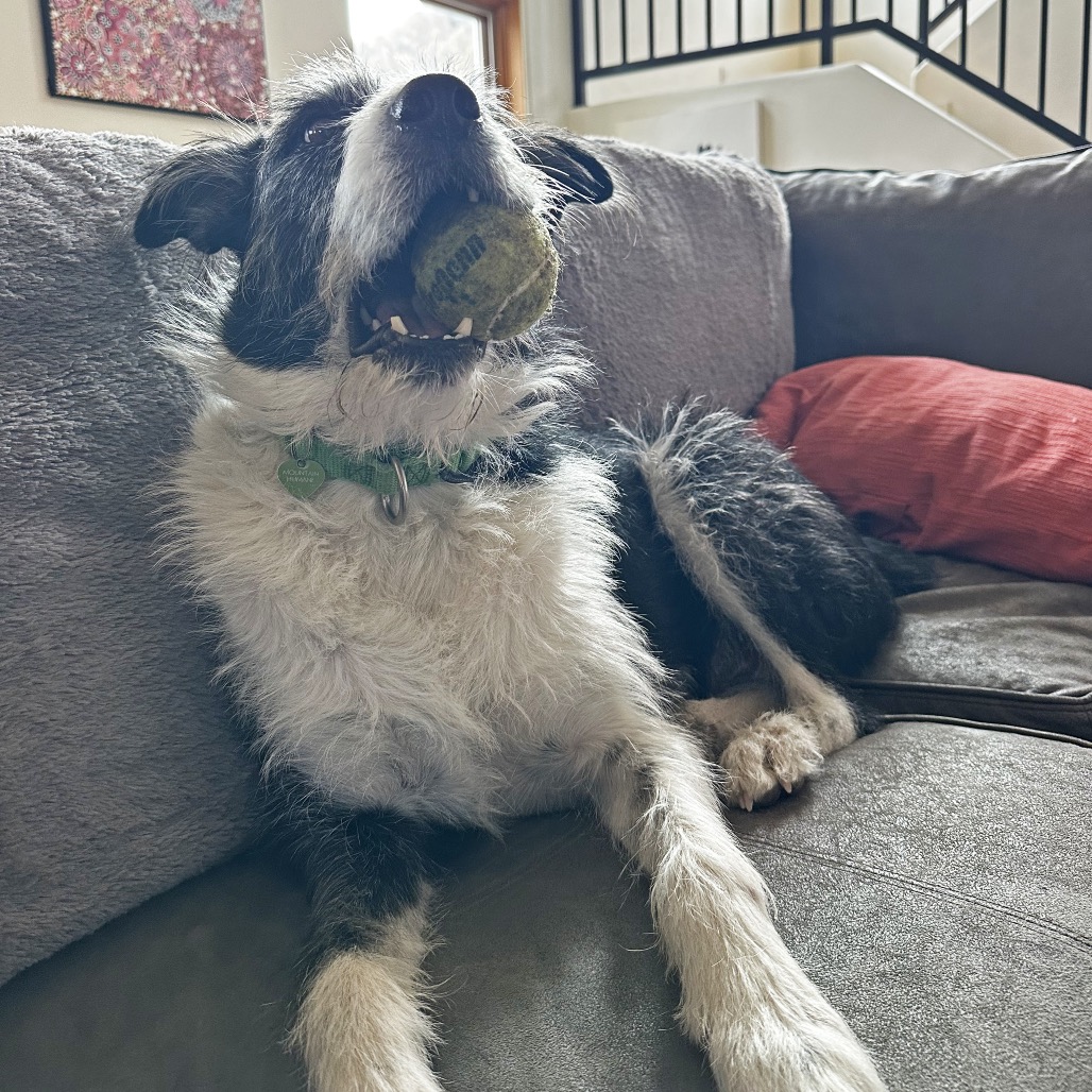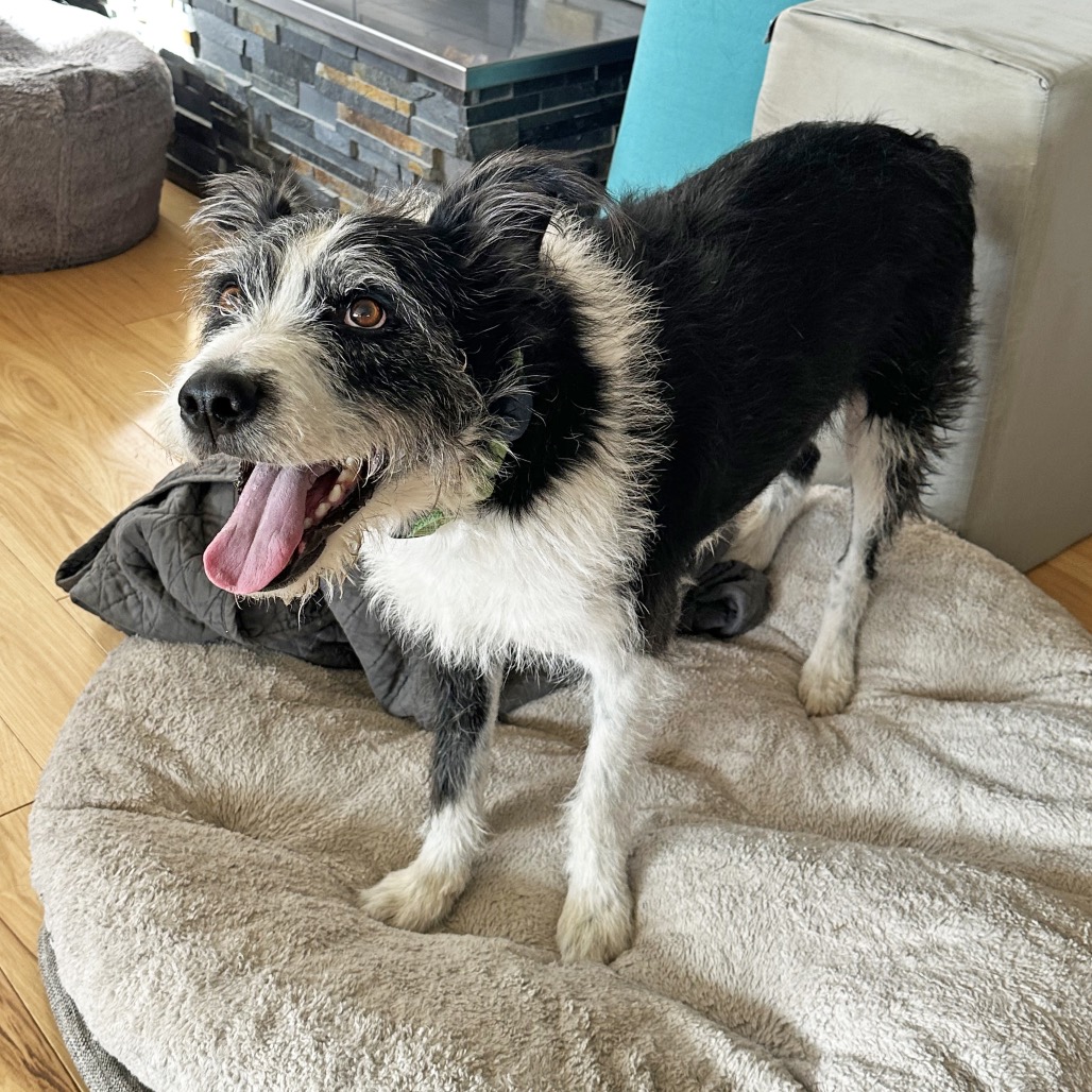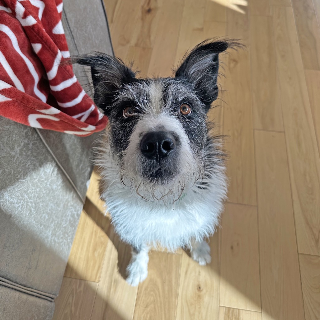 Meet Charlie, the scruffy black-and-white stout boy with eyes that make you feel like he’s having a whole conversation with you! This personable pup is the definition of a Fetch Superstar—he lives for toys, especially balls, frisbees, and anything squeaky. He even showed off his unique talents in foster care by bopping a balloon with his snout to keep it in the air!