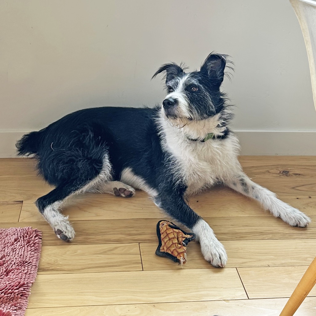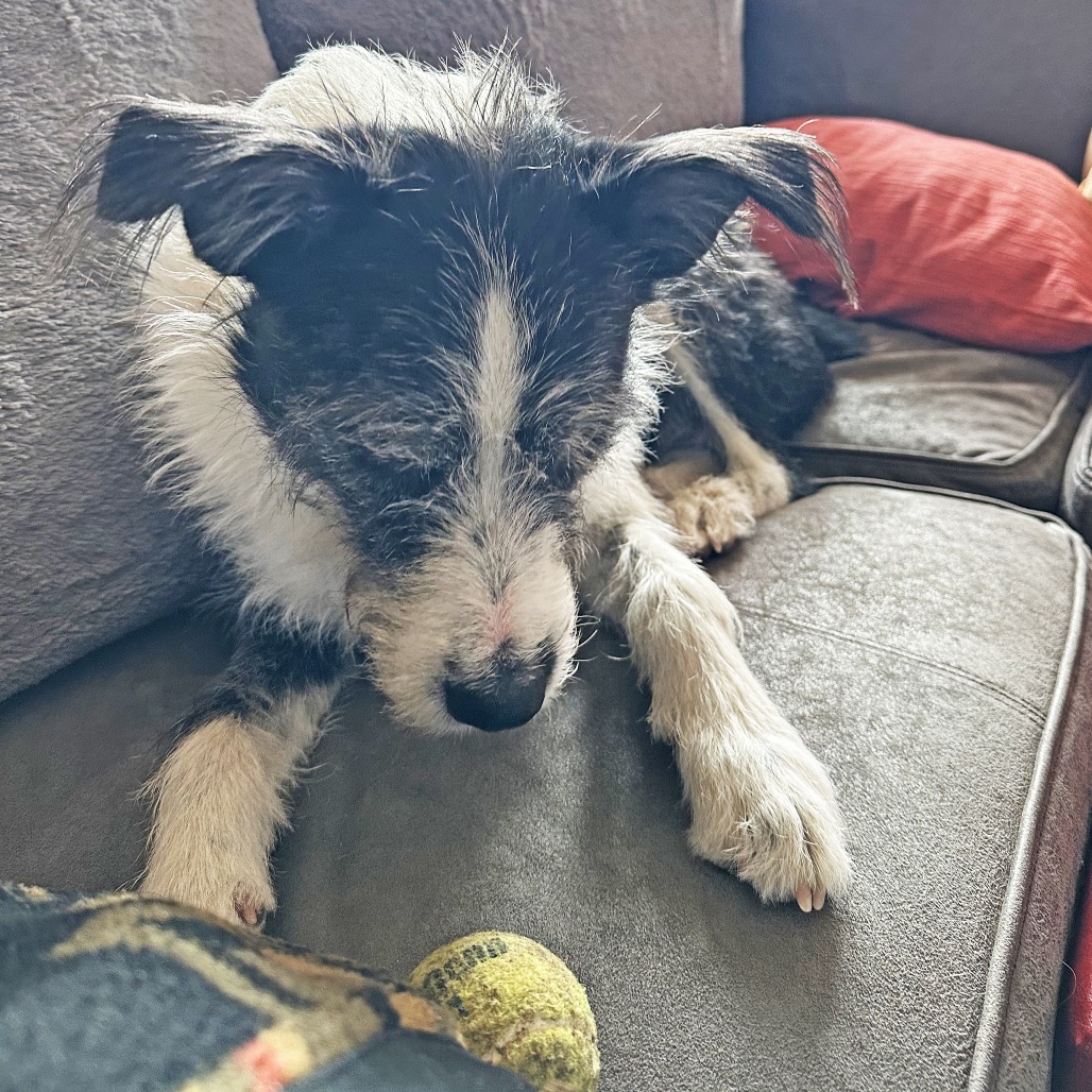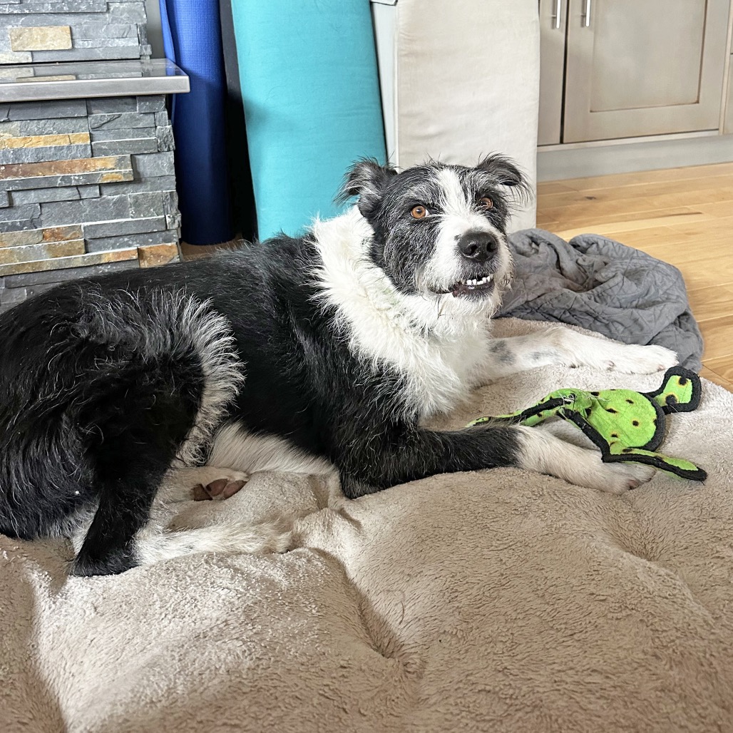 Meet Charlie, the scruffy black-and-white stout boy with eyes that make you feel like he’s having a whole conversation with you! This personable pup is the definition of a Fetch Superstar—he lives for toys, especially balls, frisbees, and anything squeaky. He even showed off his unique talents in foster care by bopping a balloon with his snout to keep it in the air!