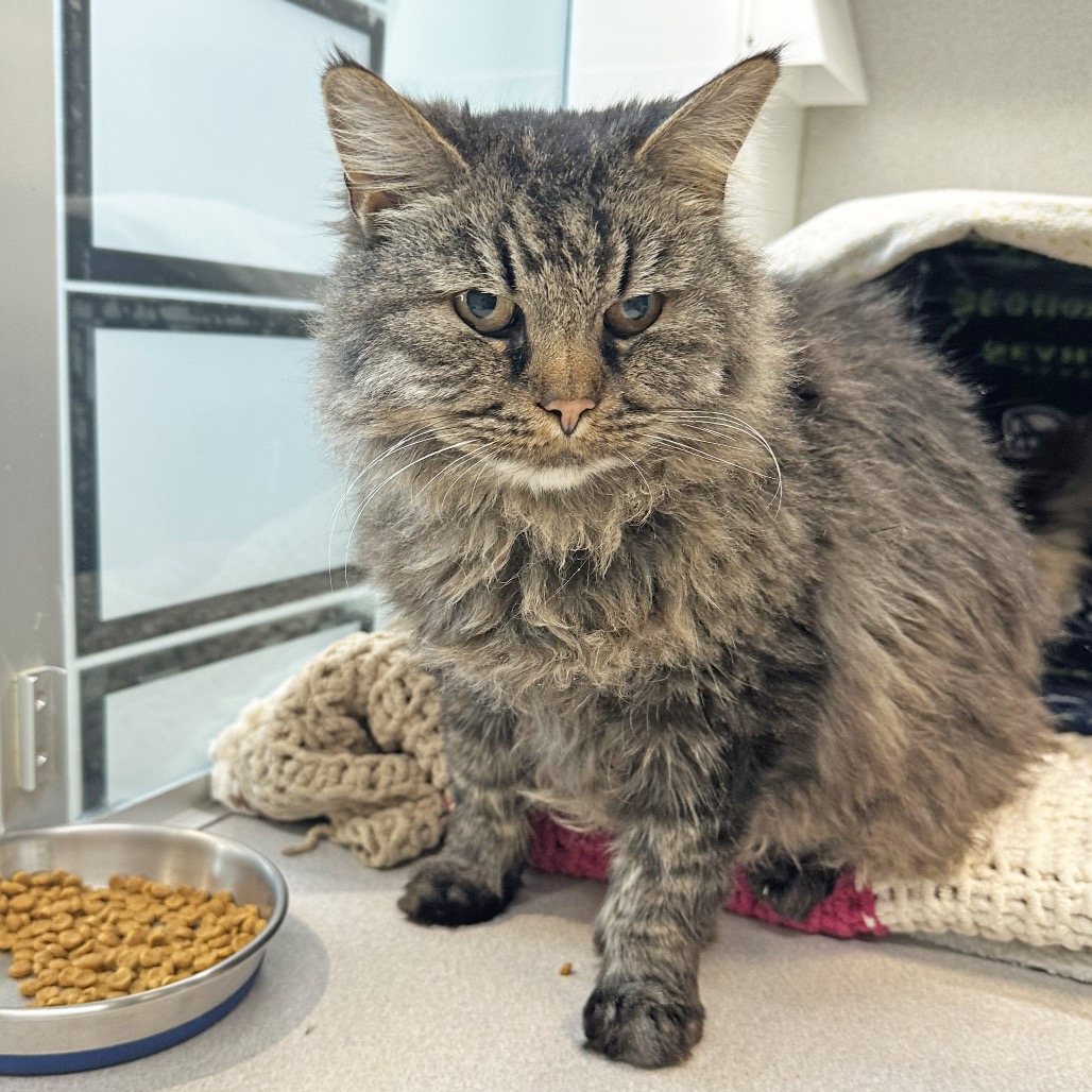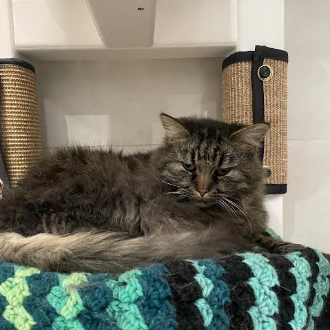 McDonald is a 8-year-old grey domestic longhair with a big body and an even bigger heart. He loves being the center of attention and has a presence that’s hard to miss. Confident, loving, and full of charm, McDonald is the kind of cat who knows what he wants—and what he wants is to be loved. He’d thrive in a home where he can soak up all the affection he deserves.
