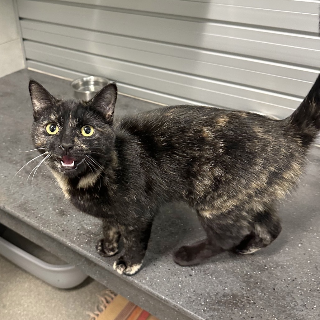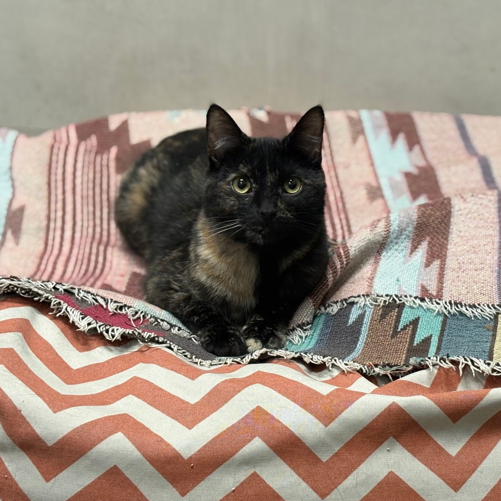 Once Echo trusts you, she blossoms into the sweetest girl — full of personality, affection, and charm. She adores gentle pets, leans in for attention, and will happily reward her favorite humans with sweet kitty kisses. Her expressive nature and tortie attitude make every moment with her unique and endearing.