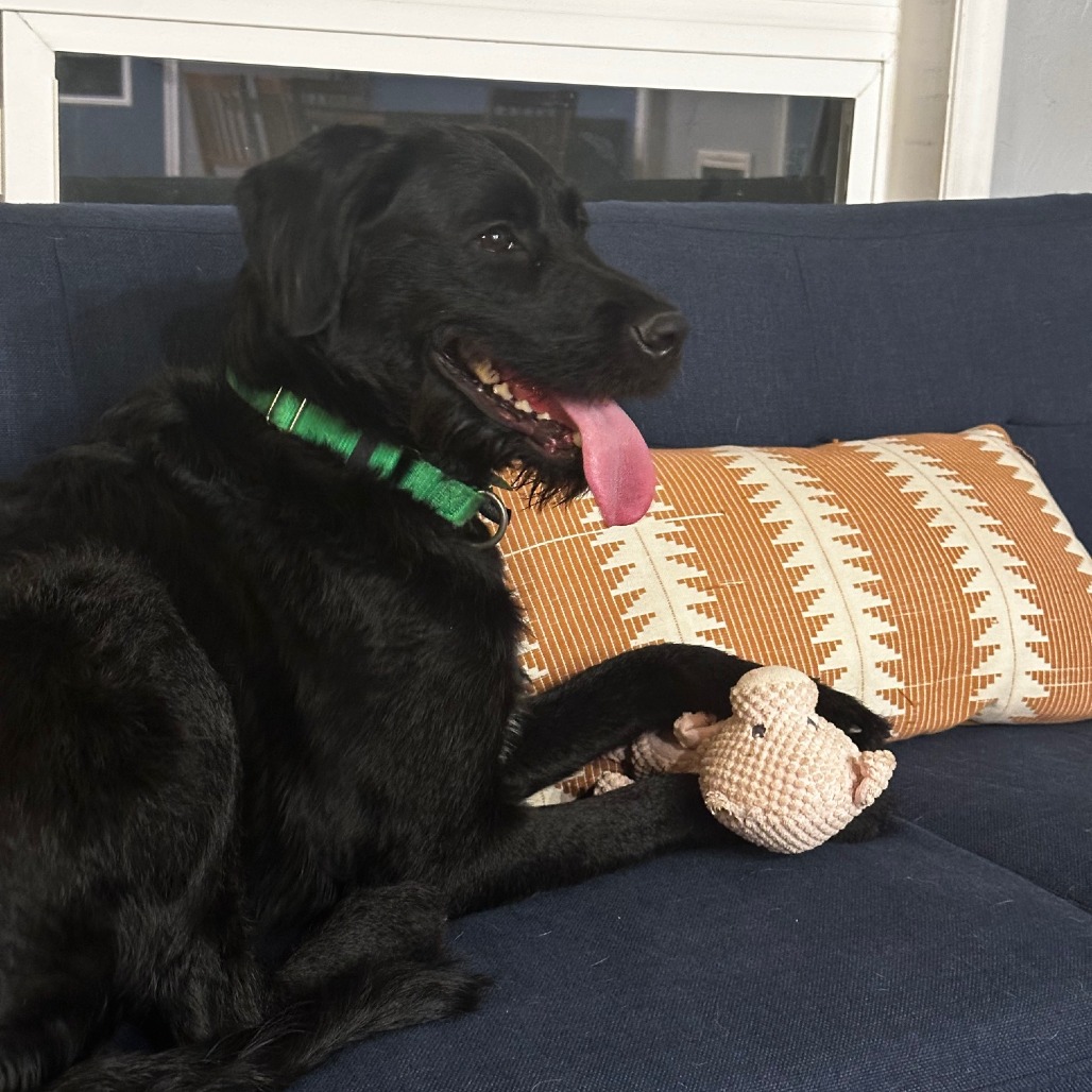 Mazie is a shy and timid girl at first, but her quiet beauty and sweet soul shine once you get to know her. Her name means rarity and beauty, and it fits perfectly—this ebony beauty has a sleek black coat and wispy hairs on her chin that give her extra character. When she comes out of her kennel, Mazie often bursts into joyful zoomies, though she also enjoys calm, peaceful moments.