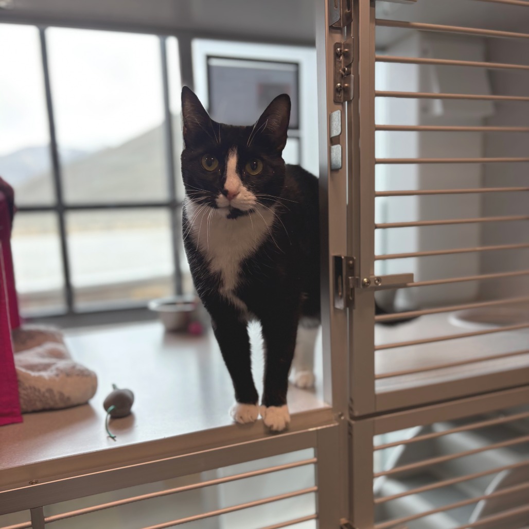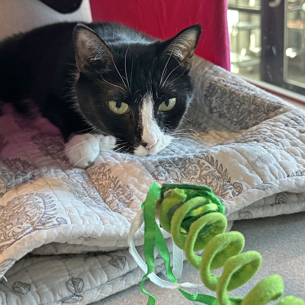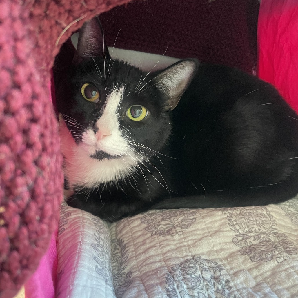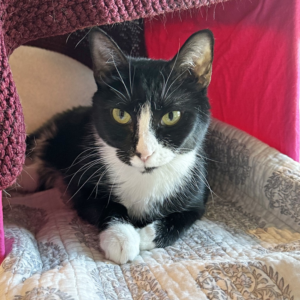 This young tuxedo girl absolutely *adores* attention and will happily rush over the second you’re nearby, ready for pets and love. With her soft gaze and gentle presence, Neptune has a way of making everything slow down—you can’t help but feel a little more grounded with her by your side.